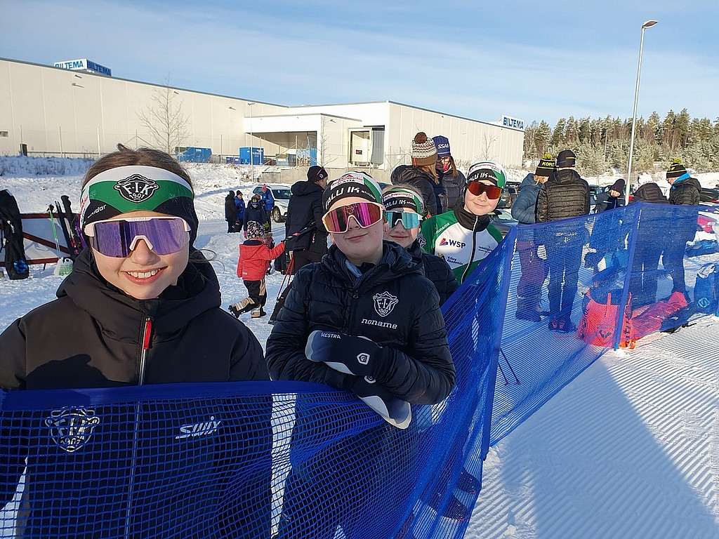 Här kan du läsa om kläder och utrustning. Bilden visar några av våra tränande barn i Falu IKs dunjacka, träningsjacka, pannband och mössa.
