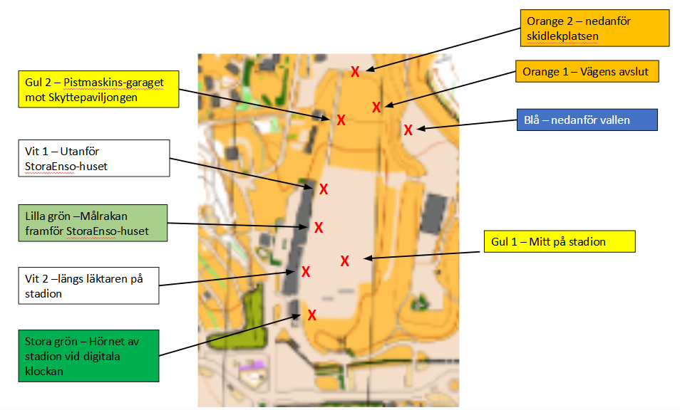 Samlingsplatser för träningsgrupperna under snösäsong